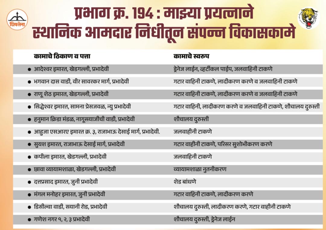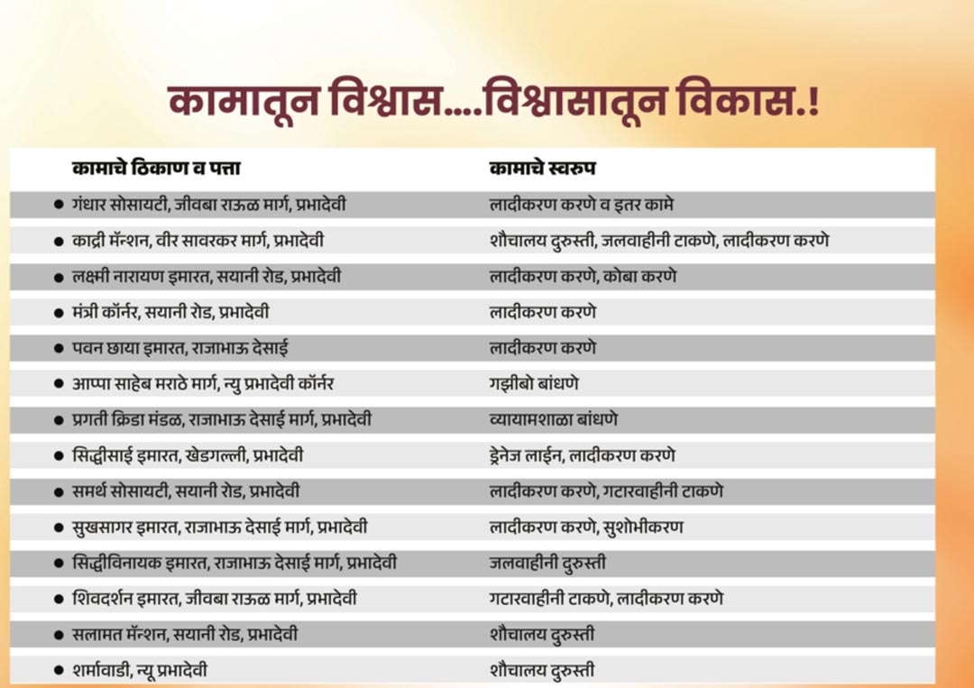 विकास कामांची यादी